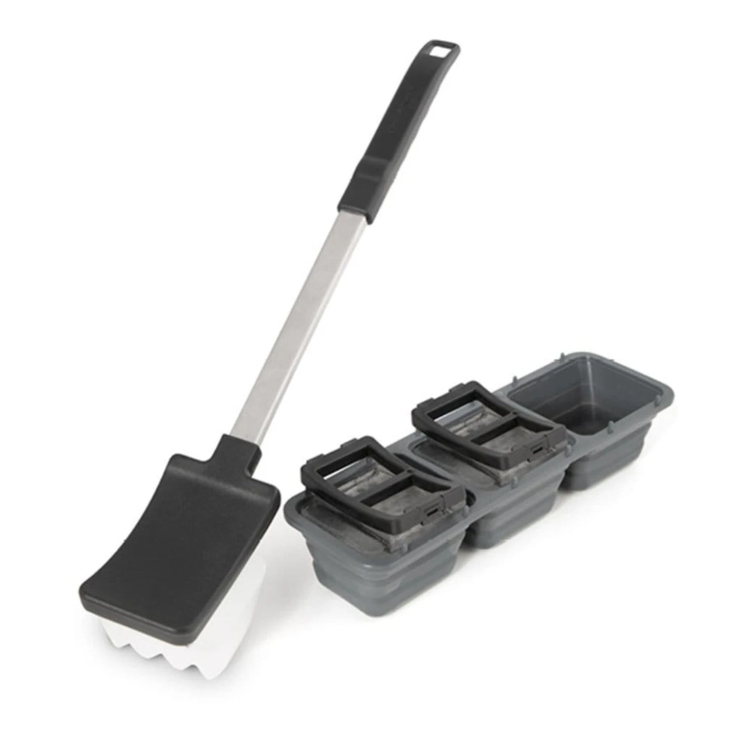 - A unique grill cleaning tool that uses ice to clean around grids and removing debris without leaving any residue.