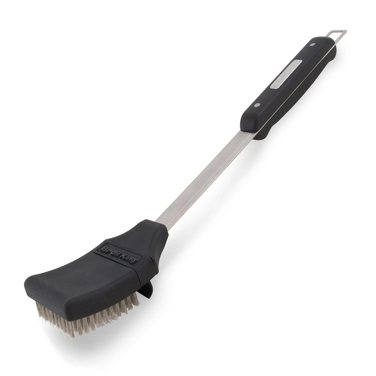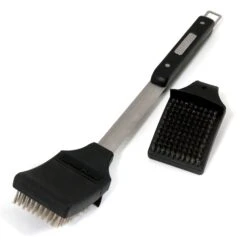 Broil King 64038 Stainless Steel Baron Palmyra Grill Brush offers a premium accessory for use with your grill. All-natural palmyra bristles offer a stiff and safe scrubbing texture to efficiently clean your grill. As an added bonus, any lost bristles will burn up on a hot grill to ensure your food stays bristle free. This tool has been designed for use on a warm grill below 450 degrees Fahrenheit, and this set includes a replacement brush head.