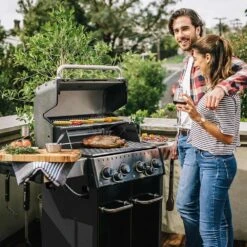 Broil King BR-490 Baron 490 Pro 4-Burner Gas Grill with Rotisserie and Side Burner, 57-Inches offers a premium grilling experience for your outdoor kitchen. This grill features die-cast aluminum and high-grade stainless steel construction for proven durability and excellent heat retention. Heavy-duty stainless steel cooking grids offer an impressive grilling service for food, while their solid design ensures excellent heat retention and searing power. The stainless steel Flav-R-Wave cooking system offers impressive heat distribution across the entire surface of the grill, while drippings that fall onto the Flav-R-Wave system are instantly vaporized. Four Dual-Tube burners feature high quality, heavy-duty stainless steel construction with a tube-in-tube, side-ported design for even heating. Linear-Flow valves with 180-degree Sensi-Touch control knobs offer smooth and simple heat control to precisely control the temperature of your grill.
