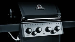 The new Broil King Crown 480 is the ideal appliance for those of you who want to do all of your cooking outdoors. This 4 burner BBQ has a good size cooking area and with the Dual Stainless Steel burners, it offers a very even heat coverage across the entire grill. The Crown 480 also comes with a handy hob burner located on the left hand side shelf, as well as a rear rotisserie burner and mains powered rotisserie kit to give you the complete outdoor cooking experience. The stainless steel Flave-R-Wave cooking system gives those classic cooking results, vaporizing the juices which infuses back into your food for great flavor. With its high heated painted steel cookbox, black powder coated side shelves, frame and front panel the Broil King Crown 480 is a welcome guest to any BBQ session.