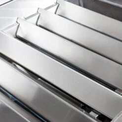 This grill features a commercial quality cart to facilitate easy movement–great for venues like gold courses and large banquets! Two large eight-inch rubber-coated all-terrain wheels allow for efficient movement on any surface, while commercial-grade locking casters keep grill stable during use. Durable stainless steel shelves and a propane tank bracket (if applicable) round out an impressive feature set for this unit.