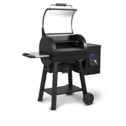 The Regal Pellet 400 pellet grill body is constructed from 2mm (14 gauge) steel and has 500 Sq.in. (3,226 Sq.cm.) of primary cooking surface, 130 Sq.in. (839 Sq.cm.) secondary cooking surface and heavy-duty cast iron cooking grids. That’s 225 lbs. of grill right out of the box. The Wifi and Bluetooth® enabled digital controller provides enhanced temperature control to smoke, roast, or sear. The controller display panel is the easiest to read while grilling, check the competition. This innovative product comes fully equipped with a powerful auger, 22-lb capacity pellet hopper, removable grease management system, unique ash management system, deluxe rotisserie kit, 2 electronic meat probes, and base storage and side shelf.